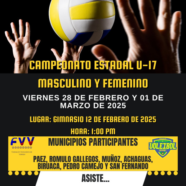 El próximo viernes 28 de febrero y el sábado 1 de marzo de 2025, el Gimnasio 12 de Febrero será el escenario de un evento deportivo lleno de energía y entusiasmo: el Campeonato Estatal U17, que contará con la participación de equipos masculinos y femeninos de los sietes municipios de nuestros estado. Desde la una de la tarde, los amantes del voleibol podrán disfrutar de un espectáculo...