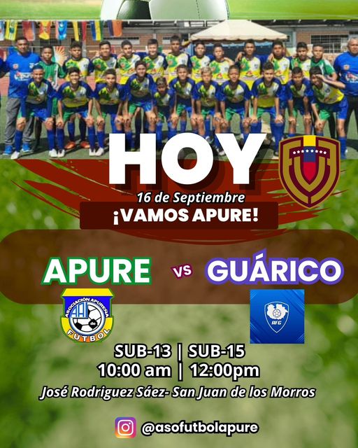 La selección del estado Apure, en las categorías Sub-13 y Sub-15, se prepara para un emocionante choque contra la selección del estado Guárico. El partido se llevará a cabo el próximo 16 de septiembre a las 10 de la mañana y a las 12 del medio día, respectivamente, en el prestigioso Estadio José Rodríguez Sáez, ubicado en San Juan de los Morros. Este encuentro promete ser una exhibición de talento y pasión futbolística, donde ambos equipos buscarán demostrar su destreza en el terreno de juego. ¡No te pierdas esta emocionante jornada deportiva!