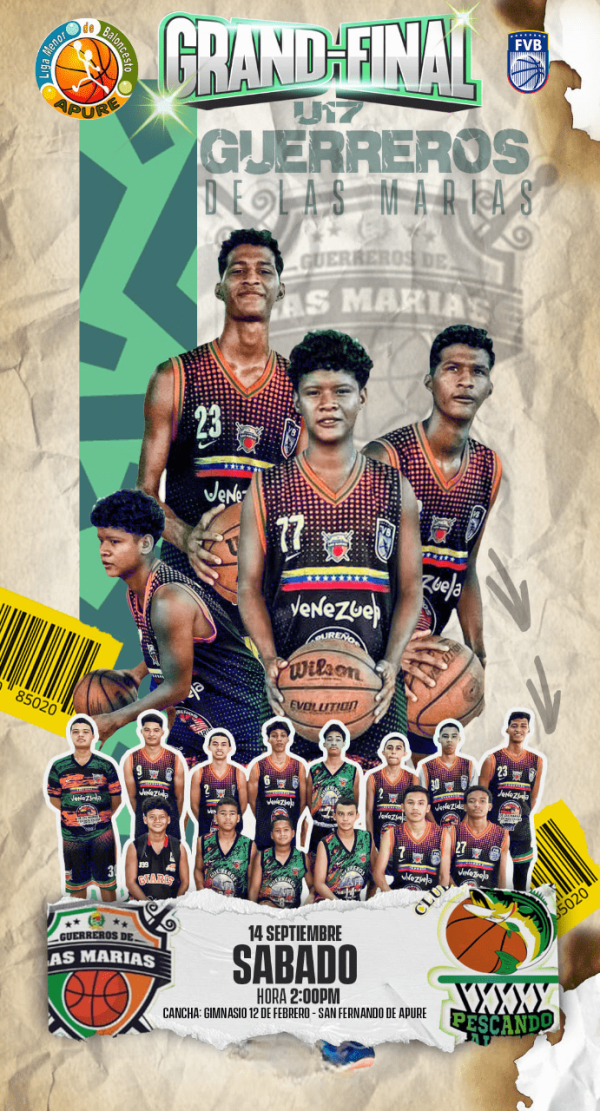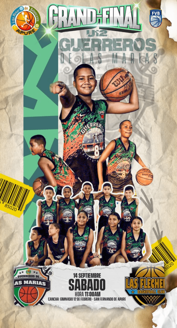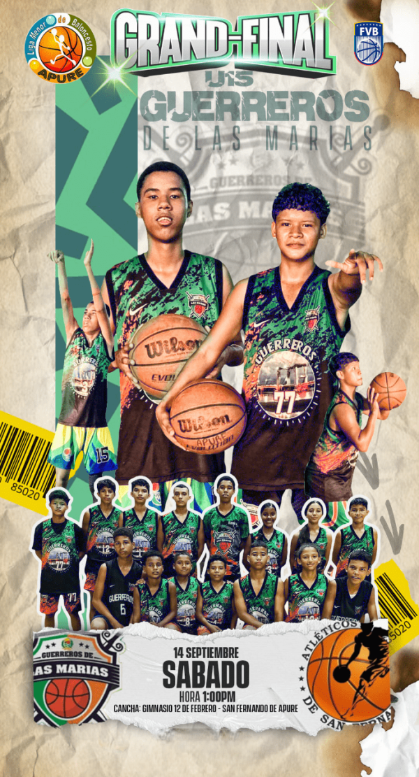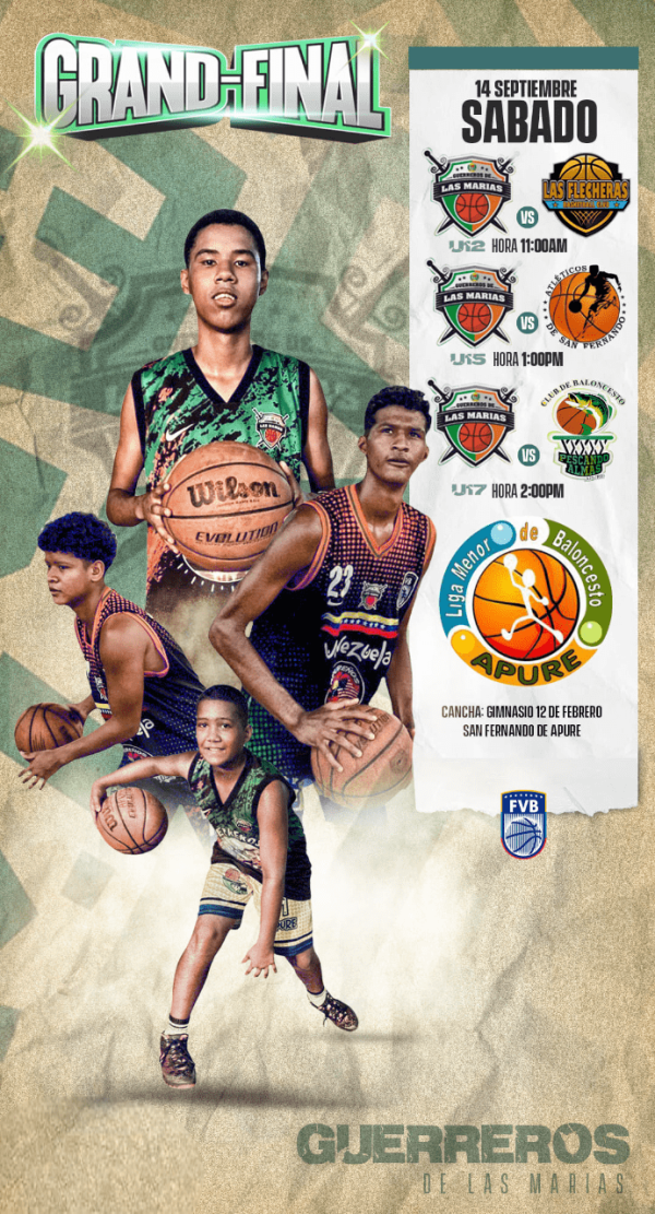 Este sábado 14 de septiembre, el equipo Guerreros Las Marías se prepara para una emocionante jornada en el Gimnasio 12 de Febrero, donde disputarán la Gran Final de la Liga Menor Apure en tres categorías: U12, U15 y U17.