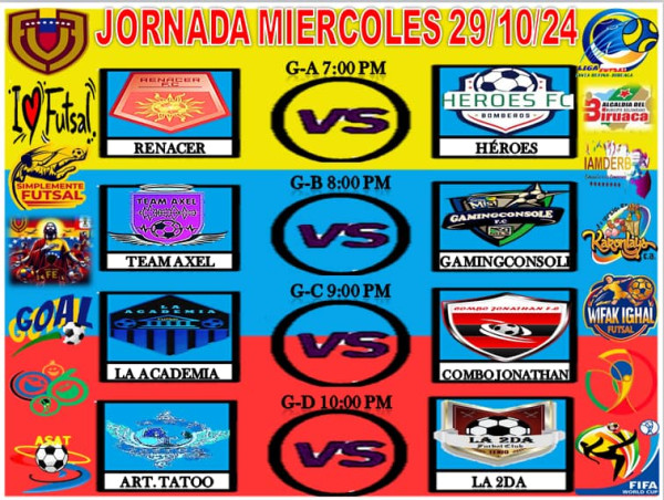 - **Grupo B**: Inversiones Dayapín F.C, La Hidalguía F.C, Team Axel F.C, Gamingconsole F.C