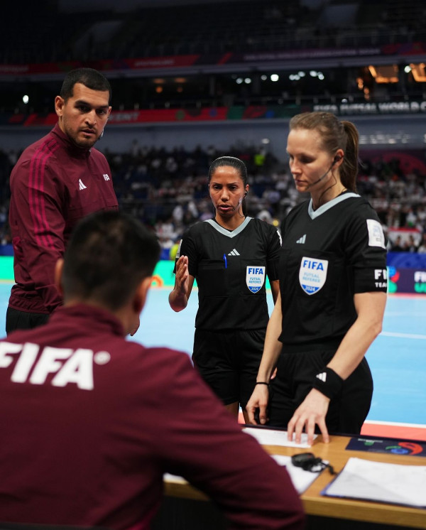 Oriana Zambrano se convierte en la primera venezolana en arbitrar un partido en el Mundial de Futsal de la FIFA 2024, celebrado en Uzbekistán.