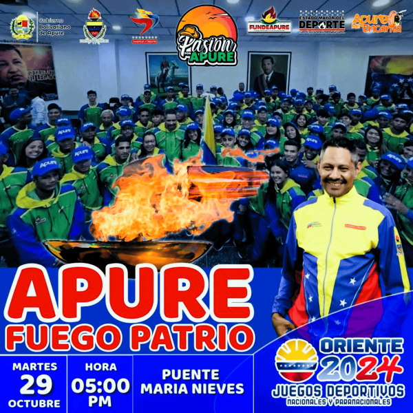 El recorrido del fuego patrio es una tradición que representa la unidad, el esfuerzo y la pasión por el deporte en nuestra nación. Este año, esperamos contar con la participación de atletas, entrenadores, familiares y toda la comunidad apureña, quienes se unirán para llevar la antorcha del fuego patrio a través de nuestras calles, simbolizando el inicio de un camino hacia la competencia nacional.