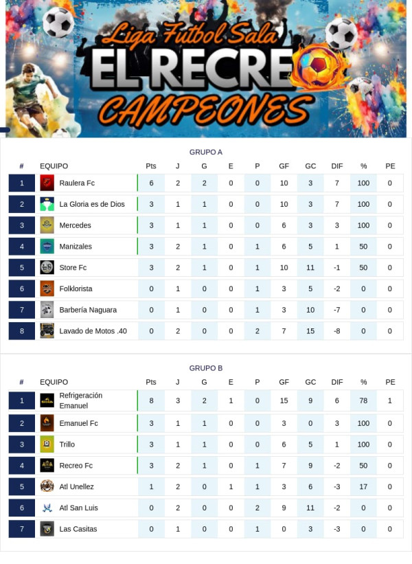 La Liga de Fútbol Sala "Al Recreo Campeones" ha tenido un inicio prometedor, con una intensa competencia entre los equipos que conforman los dos grupos que participan en el torneo. A lo largo de las primeras jornadas, hemos podido observar un emocionante despliegue de habilidades y estrategias en la cancha.