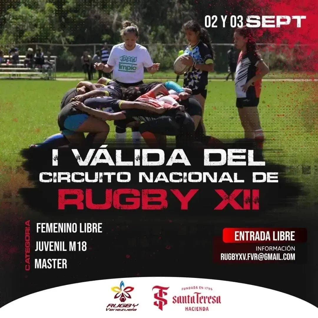El 02 y 03 de Septiembre, el rugby de Venezuela cobrará vida en un emocionante evento que se llevará a cabo en la prestigiosa Hacienda Santa Teresa. Este lugar emblemático se convertirá en el escenario perfecto para la Primera válida del Circuito Nacional Rugby XII, donde equipos de distintas categorías se enfrentarán en apasionantes encuentros llenos de destreza y competitividad. Será un fin de semana imperdible para los amantes del Rugby, quienes podrán disfrutar de emocionantes jugadas, camaradería y una atmósfera llena de energía.