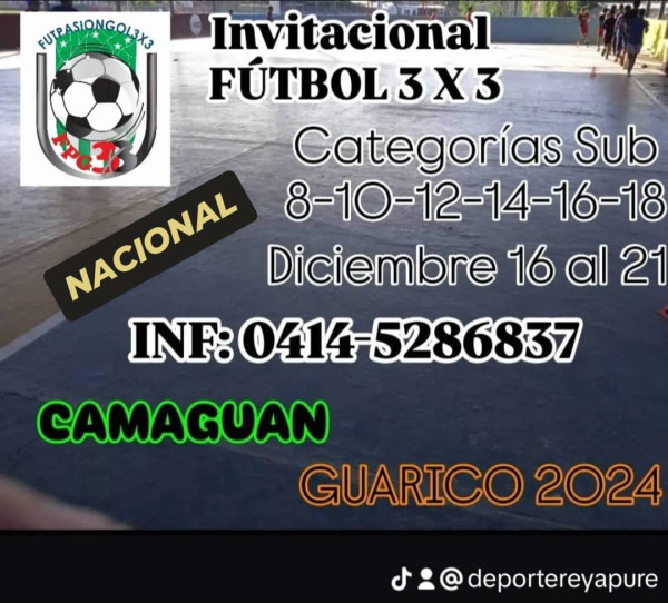 Camaguán, Estado Guárico, se prepara para recibir el emocionante Invitacional Nacional de Fútbol 3x3, que se llevará a cabo del 16 al 21 de diciembre. Este evento contará con la participación de jóvenes talentos en diversas categorías: Sub 8, Sub 10, Sub 12, Sub 14, Sub 16 y Sub 18. Los equipos competirán en un formato dinámico y divertido que promueve el desarrollo del fútbol en los más pequeños.