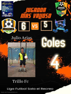 El último partido de la noche fue un verdadero choque de titanes entre El Trillo y Atlético San Luis. En un emocionante cierre, El Trillo se impuso por 6 a 5. La estrella del encuentro fue Julio Arias, quien brilló al marcar 4 goles, complementado por las anotaciones de Jean Calle y Johan Pérez. Por parte de Atlético San Luis, Juan Bravo destacó con 3 goles, mientras que Rafael Olivares y Nelson Olivares aportaron 1 gol cada uno.