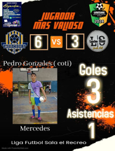 El equipo de Mercedes comenzó su participación con una sólida victoria, derrotando a Store FC con un marcador de 6 a 3. Pedro González fue el gran protagonista del partido, anotando 3 goles, mientras que Ronny Hurtado también tuvo una destacada actuación con otros 3 tantos. Por Store FC, Anderson Ascanio logró marcar 2 goles y Pedro Correa sumó 1 a su cuenta.