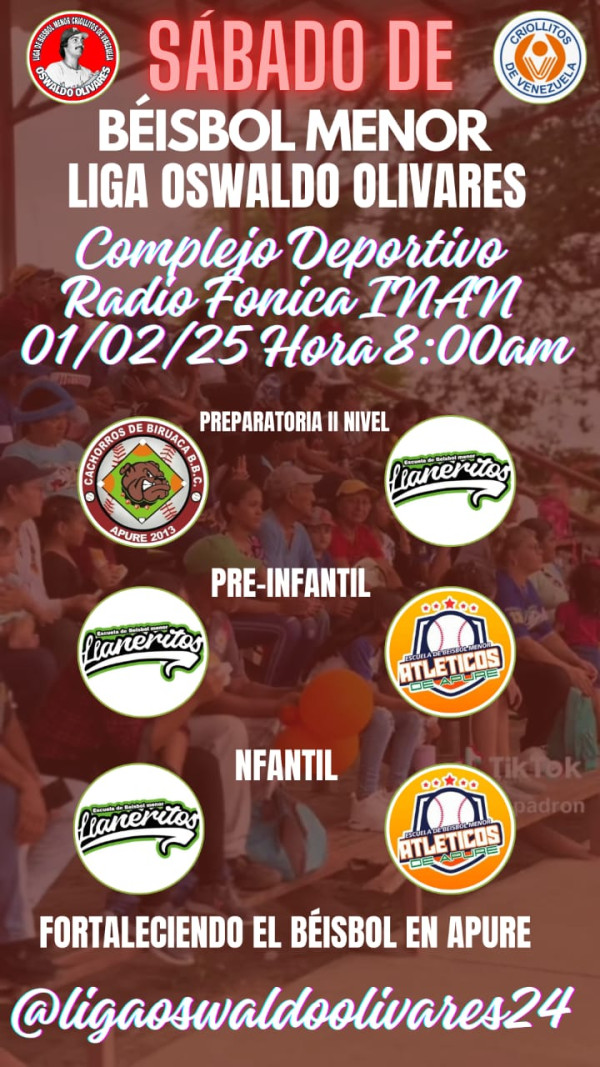 El próximo sábado 1 de febrero, el Complejo Deportivo Radio Fónica INAN será el escenario de una emocionante jornada de béisbol menor organizada por la Liga Oswaldo Olivares. A partir de las 8:00 a.m., se llevarán a cabo tres vibrantes encuentros que prometen entretener a los aficionados y fortalecer la práctica del béisbol en la región de Apure.