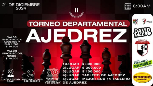 El reciente torneo de ajedrez departamental celebrado en Arauca ha dejado a todos los participantes y espectadores con la emoción a flor de piel, ya que culminó con un desenlace extremadamente cerrado.