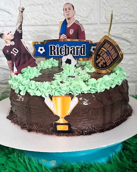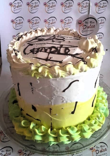 Torta de bizcocho marmoleado con ganasch de chocolate y chocolate en gotas con topper de tunprederencia (para 45 personas aprox)