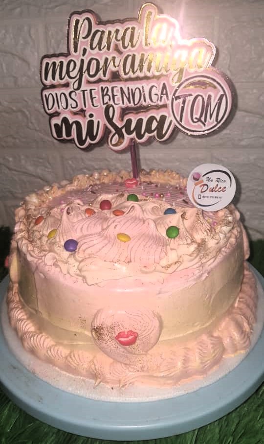Bizcocho de naranja, relleno de arequipe y topper de tu preferencia